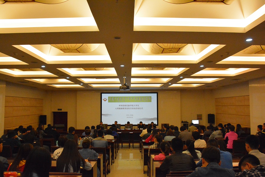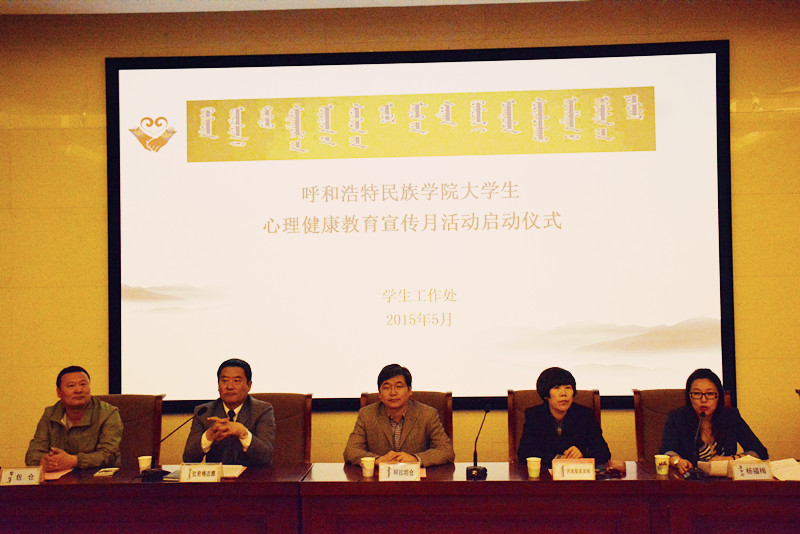 2015年5月8日上午9點,學生工作處在學院圖書館一樓報告廳舉辦了“關注心理健康,促進快樂成長,成就青春夢想”主題大學生心理健康教育宣傳月活動啟動儀式,學院副院長阿拉坦倉、紀檢委書記蘇雅勒其其格、副院長賀希格吉雅及各系部黨、團總支書記、各級心理委員共200人參加了本次啟動儀式,會議由學生處楊福梅處長主持。