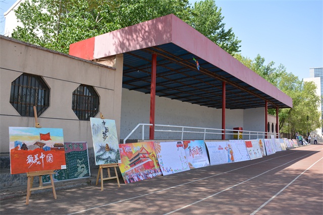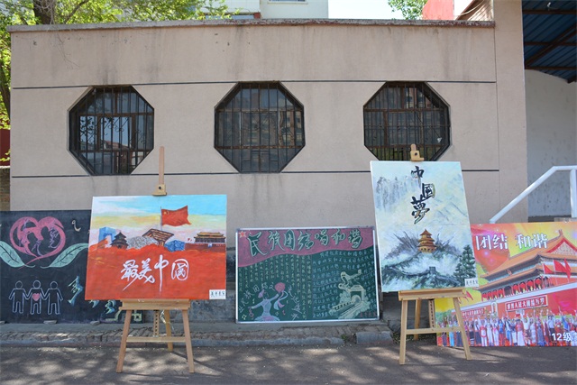 參賽作品風格各異,主題鮮明,極富藝術性和創造性。其中,美術系以”中國夢”為題材,將天安門城樓、天壇等極具中國特色的建筑畫入展板;計算機系將各族人民畫像巧妙地結合在楷書中,更將各族人民心連心、手拉手的圖像融入到中國版圖。參賽作品形式多樣,通俗易懂而又寓意深刻。