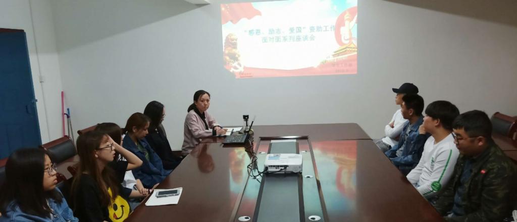 學生工作部資助中心王麗、額日和木與特困生代表召開“感恩、勵志、愛國”資助座談會,與優秀學生干部代表召開座談會,與退伍學生代表召開座談會。在與特困生代表深入交換意見之后,對特殊群體學生表達了深切的關心,并鼓勵學生代表在今后可以通過座談會勇于表達自己的訴求,協助學生工作部有針對性的開展工作。與優秀學生干部代表交流學習工作心得,與退伍學生代表交流部隊生活,暢談軍旅生涯對自己人生的改變。