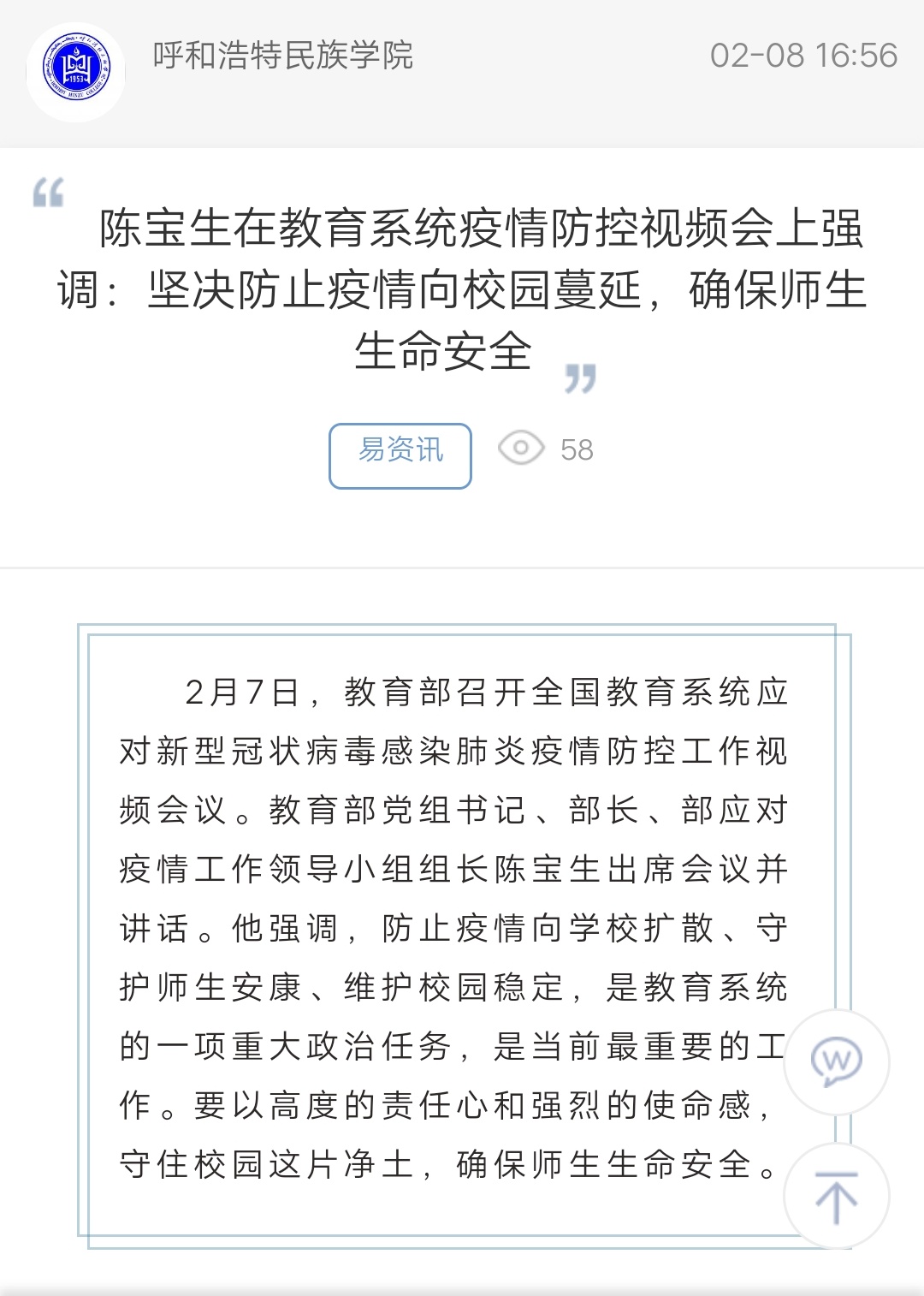 上一條:關(guān)于新冠肺炎的防治視頻 下一條:3所高校發(fā)通報(bào)處理學(xué)生!只為這一個(gè)原因……