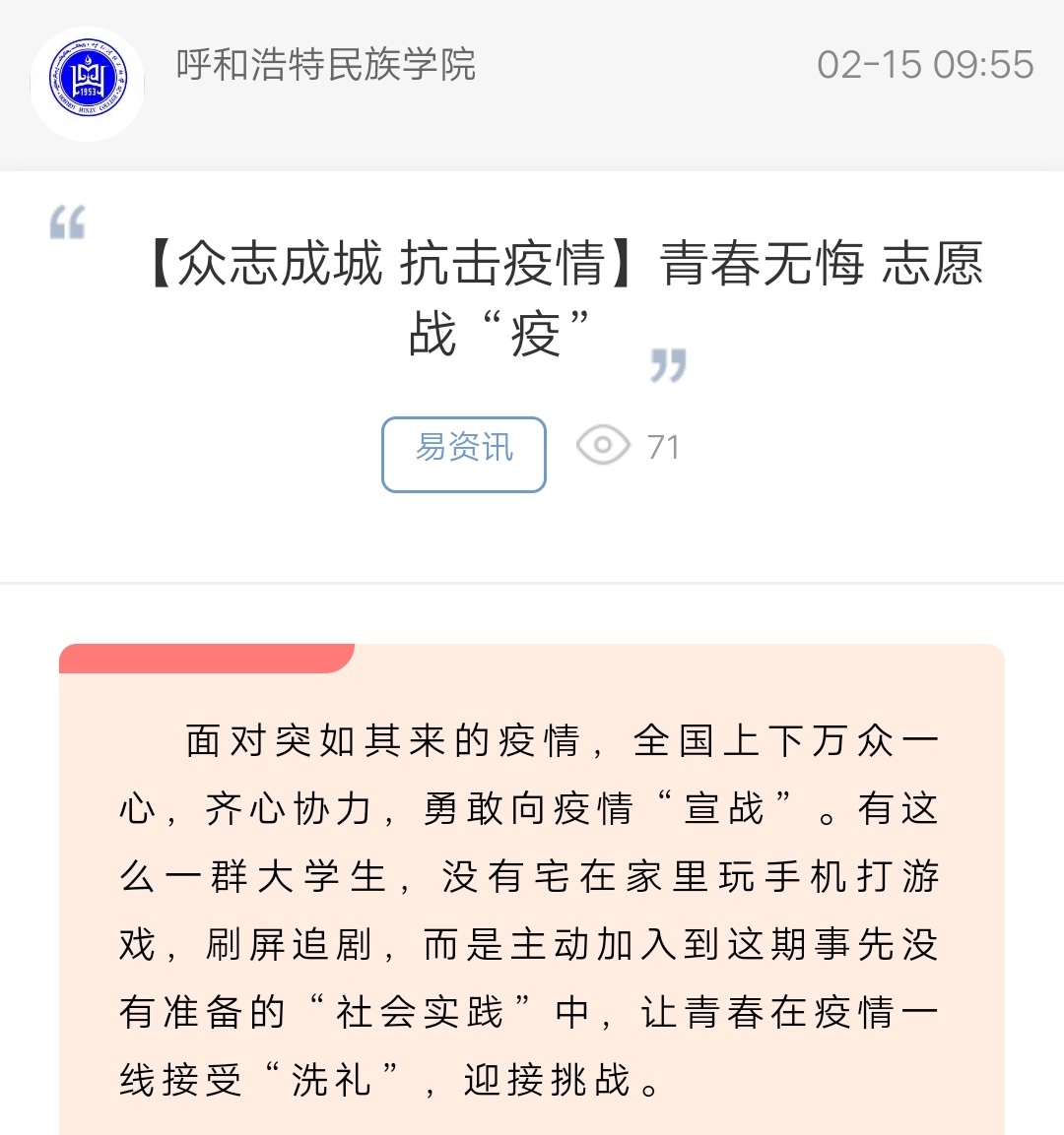 【眾志成城 抗擊疫情】青春無(wú)悔 志愿戰(zhàn)“疫”
