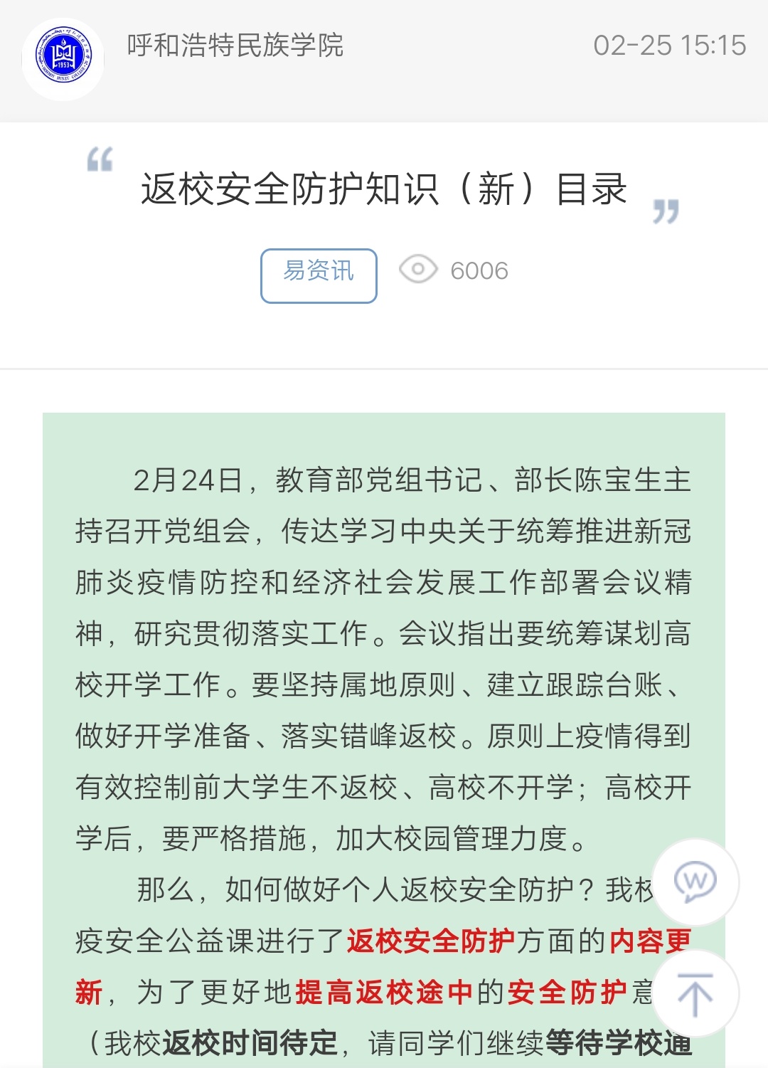 上一條:【戰“疫”有我——宅出精彩】呼和民院學生專業技能練習篇 下一條:【熱點】關于何時開學,教育部部署來了!