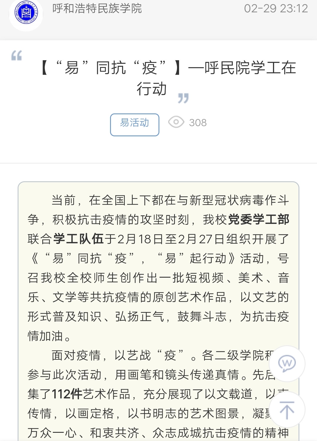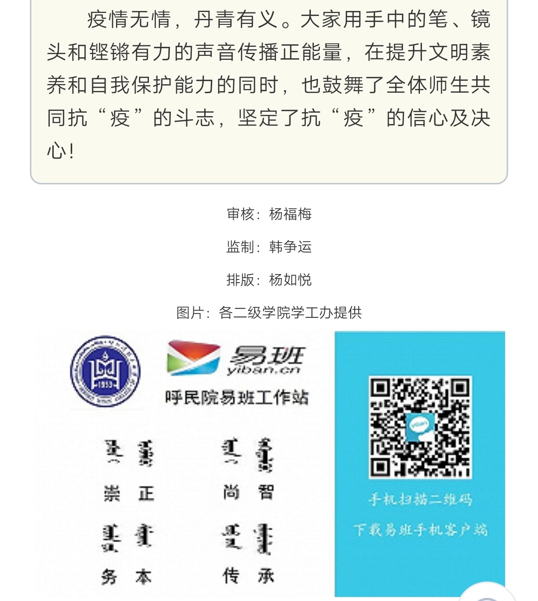 上一條:致全校學生管理人員的一封信 下一條:畢業生邀請函| 防控疫情,就業在線——呼和浩特民族學院2020屆畢業生春季網絡雙選會
