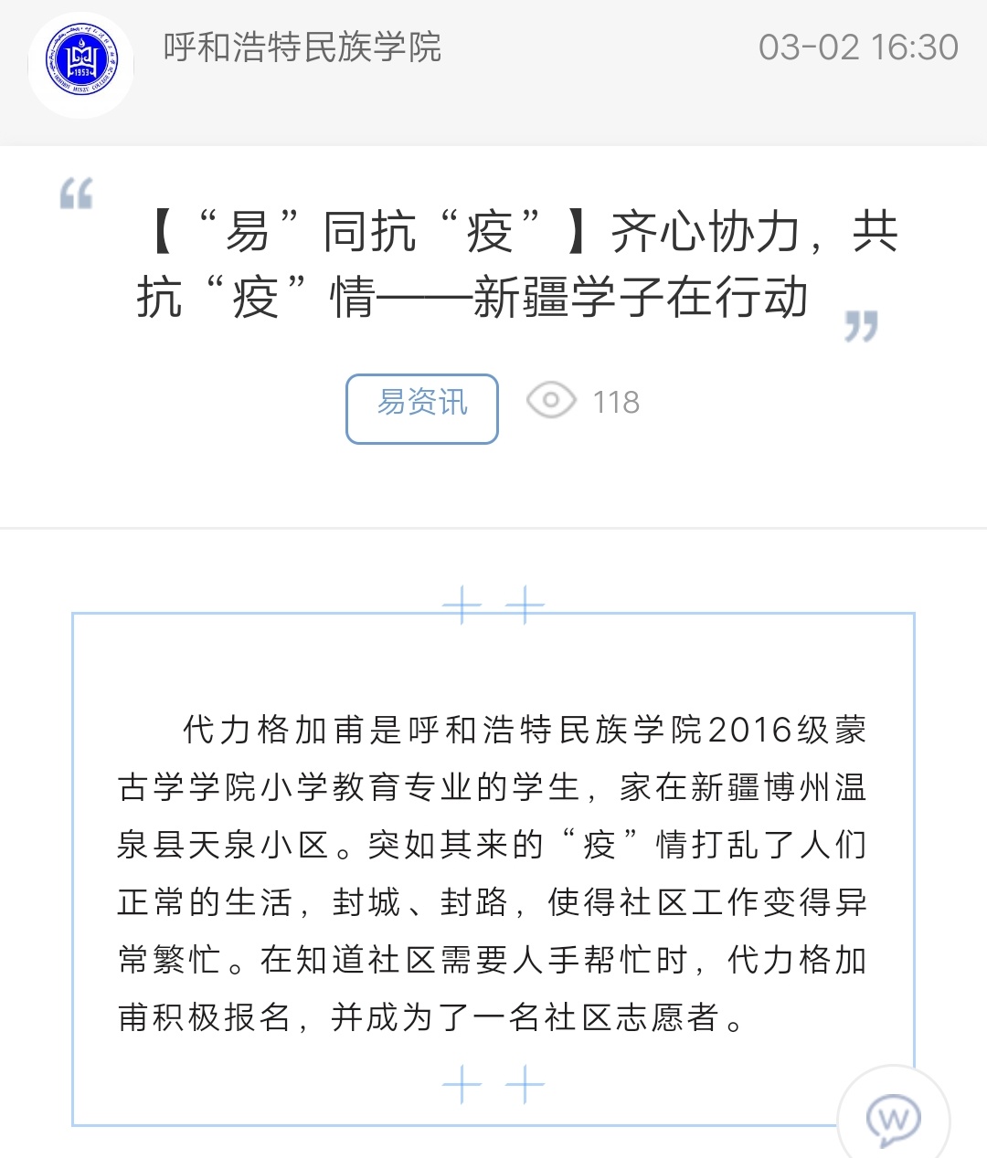 上一條:呼和浩特民族學院關于在疫情防控延期開學期間召開主題網(wǎng)絡班會通知 下一條:呼和浩特民族學院疫情防控期間學生臨時困難補助措施