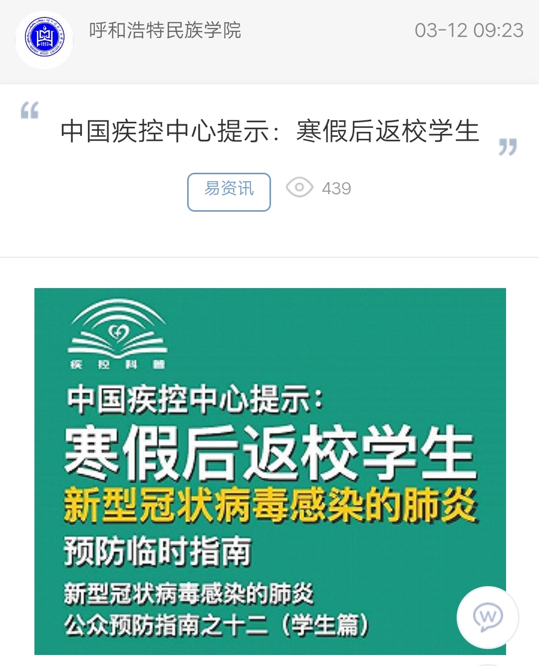 上一條:一堂“思政大課” 堅定呼和民院師生戰”疫“信心 下一條:啥時候能開學? 教育部:要滿足三個條件