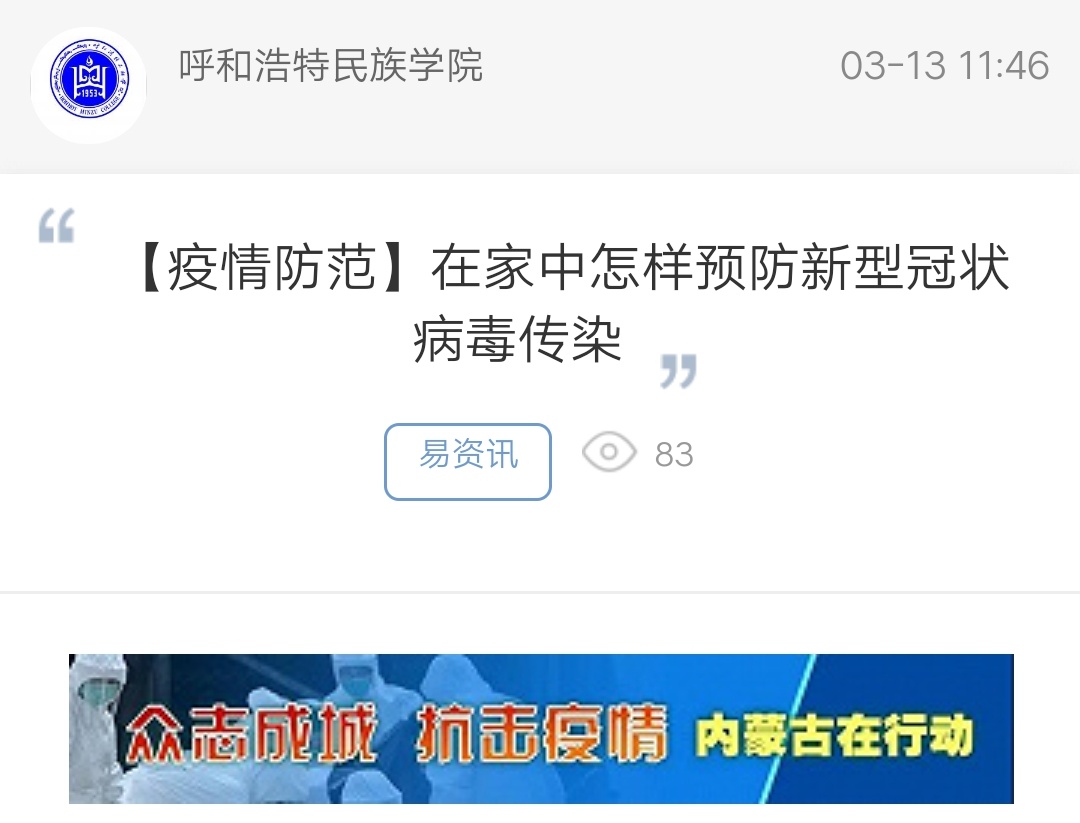 上一條:教育部:高校開學后,學生不出校、一日三報告、上課戴口罩、外賣不入校……… 下一條:一堂“思政大課” 堅定呼和民院師生戰”疫“信心