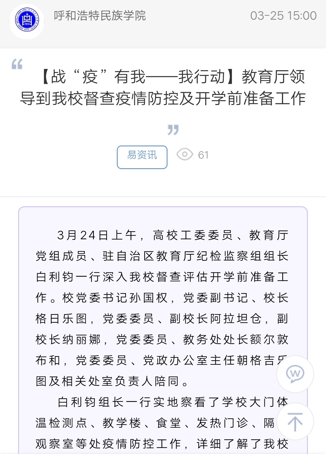 上一條:【戰“疫”有我——我主筆】快來領取你的呼和民院專屬月歷 下一條:【戰“疫”有你】“3.25”心理健康周—心理協會在行動