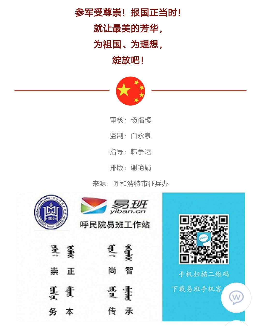 上一條:易班素材推文操作流程(學(xué)院版) 下一條:當(dāng)兵十大好處!還等什么,快來報(bào)名參軍吧!