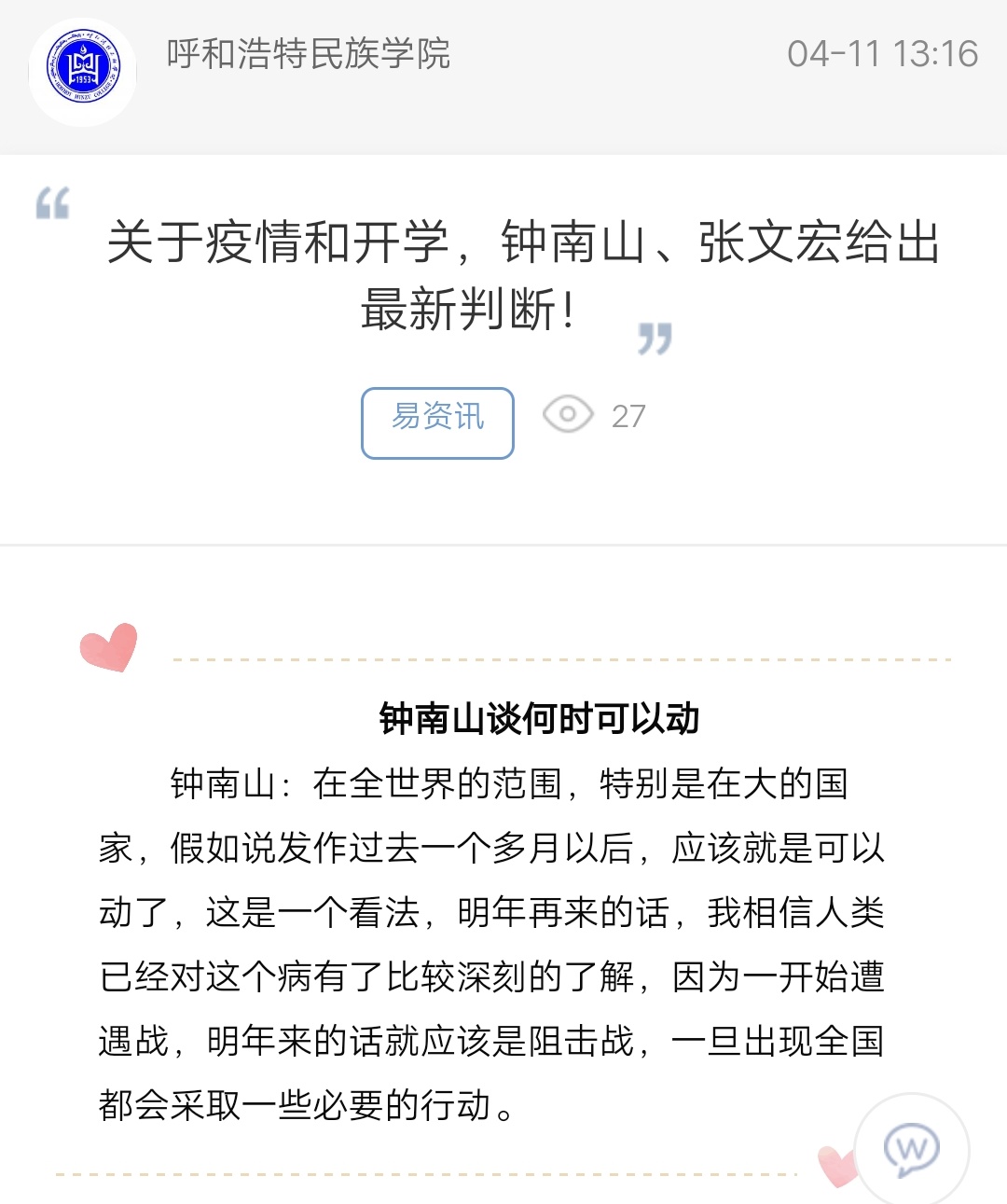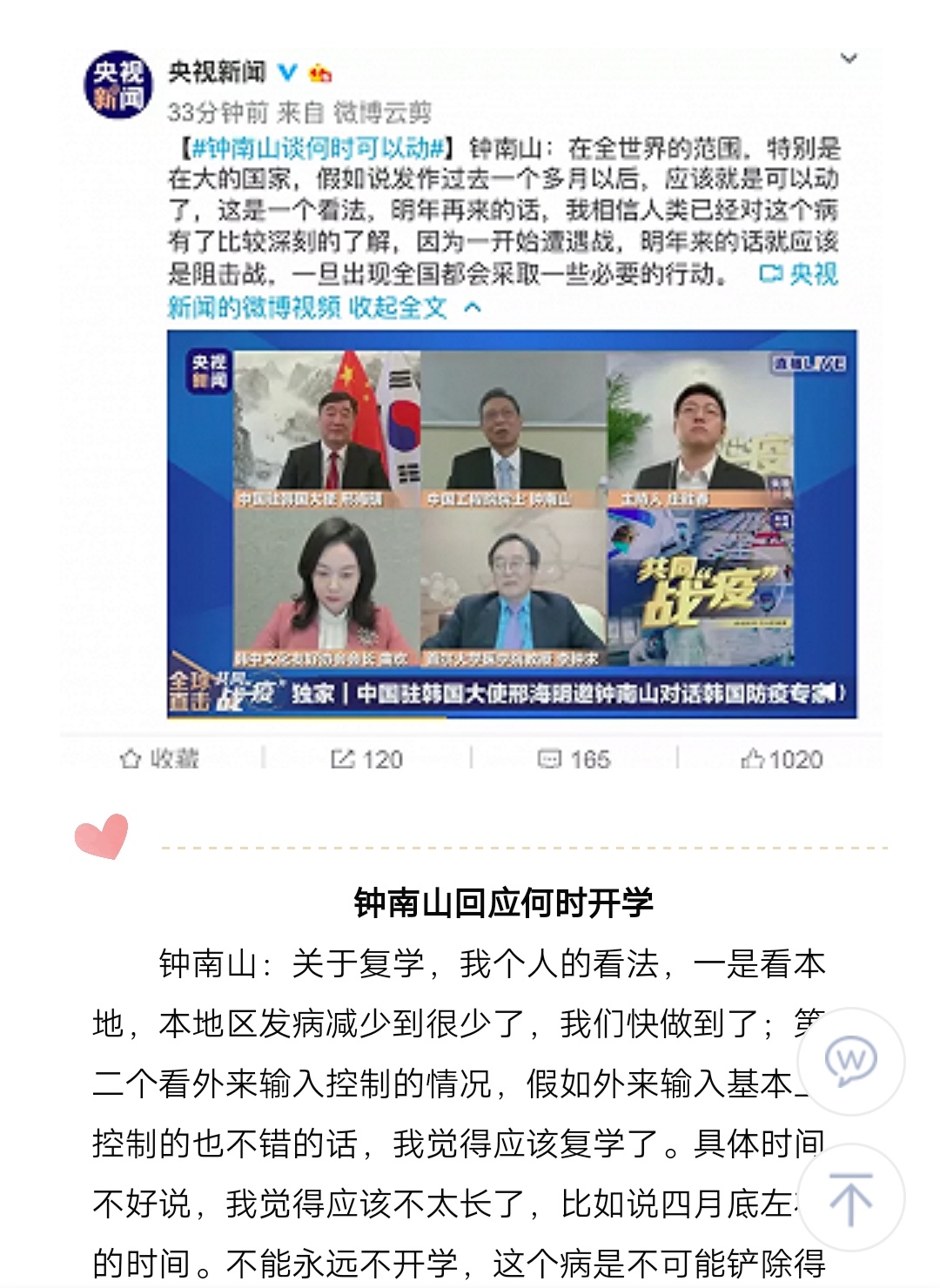 關于疫情和開學,鐘南山、張文宏給出最新判斷!
