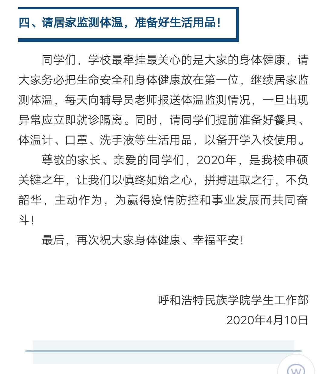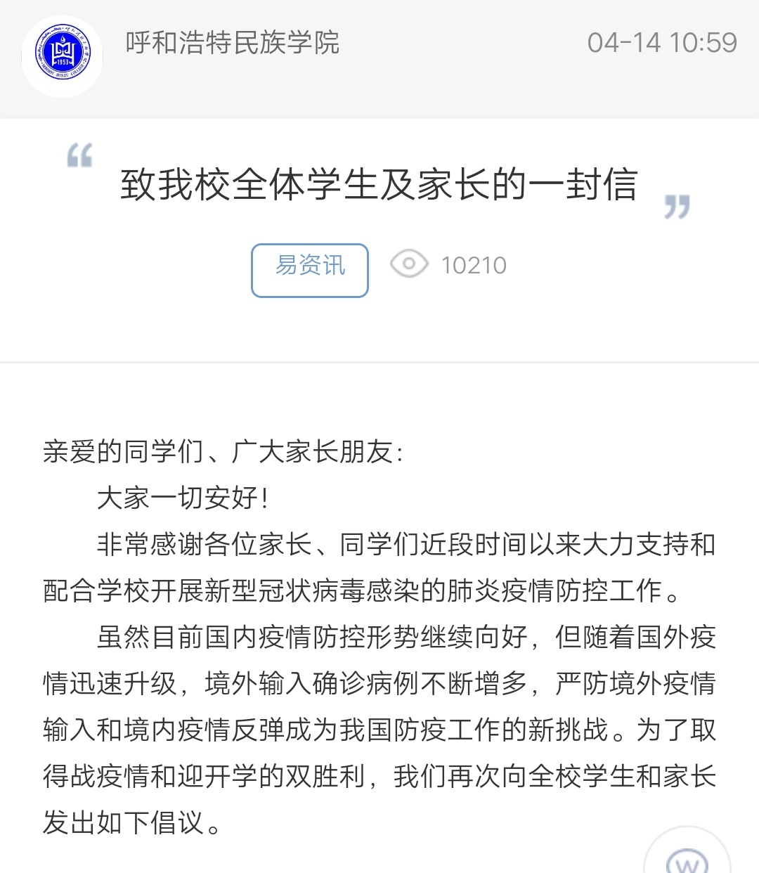 上一條:致我校全體學生和家長的一封信(蒙文版) 下一條:最全梳理!受疫情影響,這些考試推遲或取消
