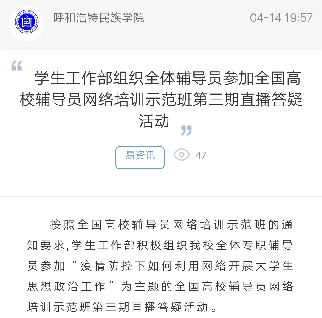 上一條:“同心共筑”2020屆畢業(yè)生高校聯(lián)合網(wǎng)絡(luò)招聘會(huì) 暨少數(shù)民族畢業(yè)生專場(chǎng)用人單位邀請(qǐng)函 下一條:致我校全體學(xué)生和家長(zhǎng)的一封信(蒙文版)