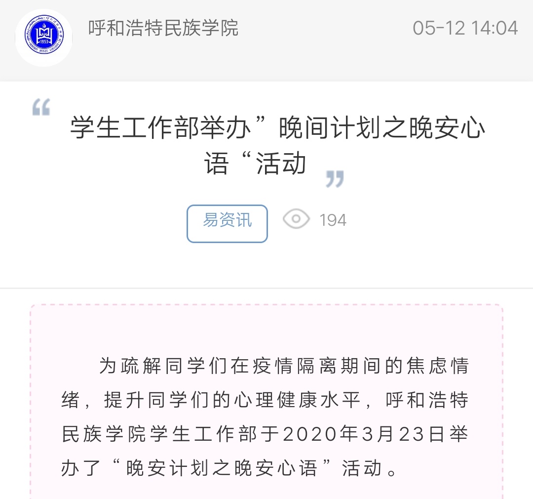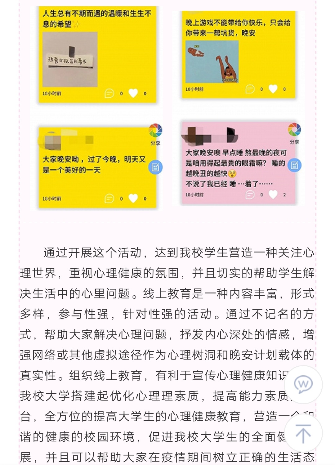 學(xué)生工作部舉辦”晚間計(jì)劃之晚安心語(yǔ)“活動(dòng)