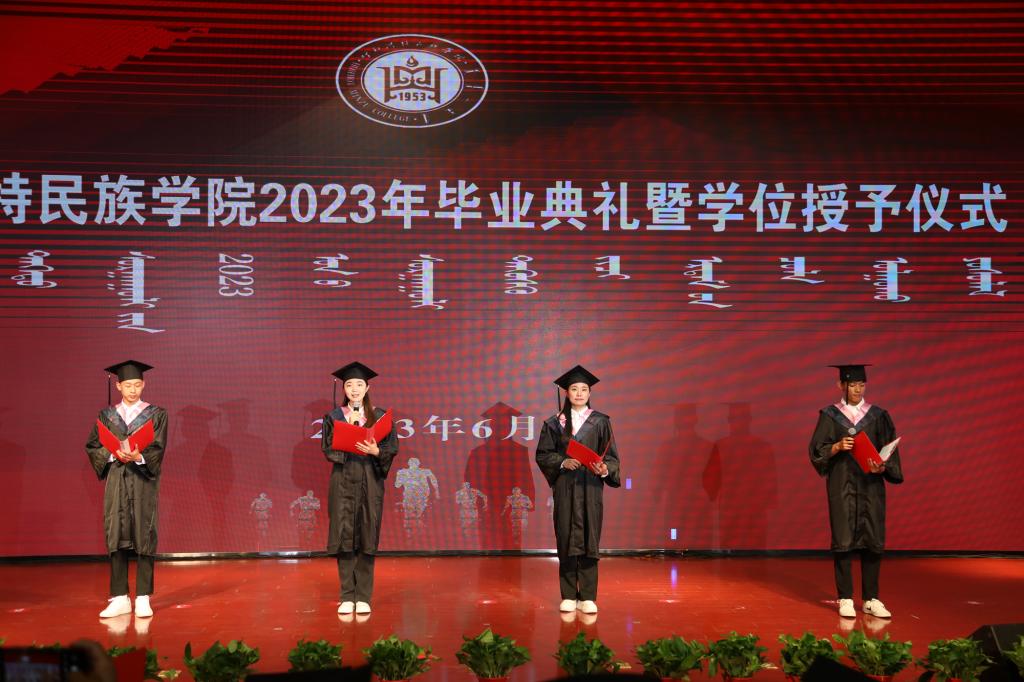 學校黨委書記劉九萬,黨委副書記、校長韓偉新,黨委副書記胡春梅,副校長納麗娜,黨委委員、副校長高喜天,黨委委員、副校長劉瑞鴻,學位評定委員會成員,各職能部門負責人,各二級學院黨政負責人、學工辦主任、團總支書記、輔導員、畢業班班主任,教師代表,校友及畢業生代表參加。典禮儀式由副校長納麗娜主持。