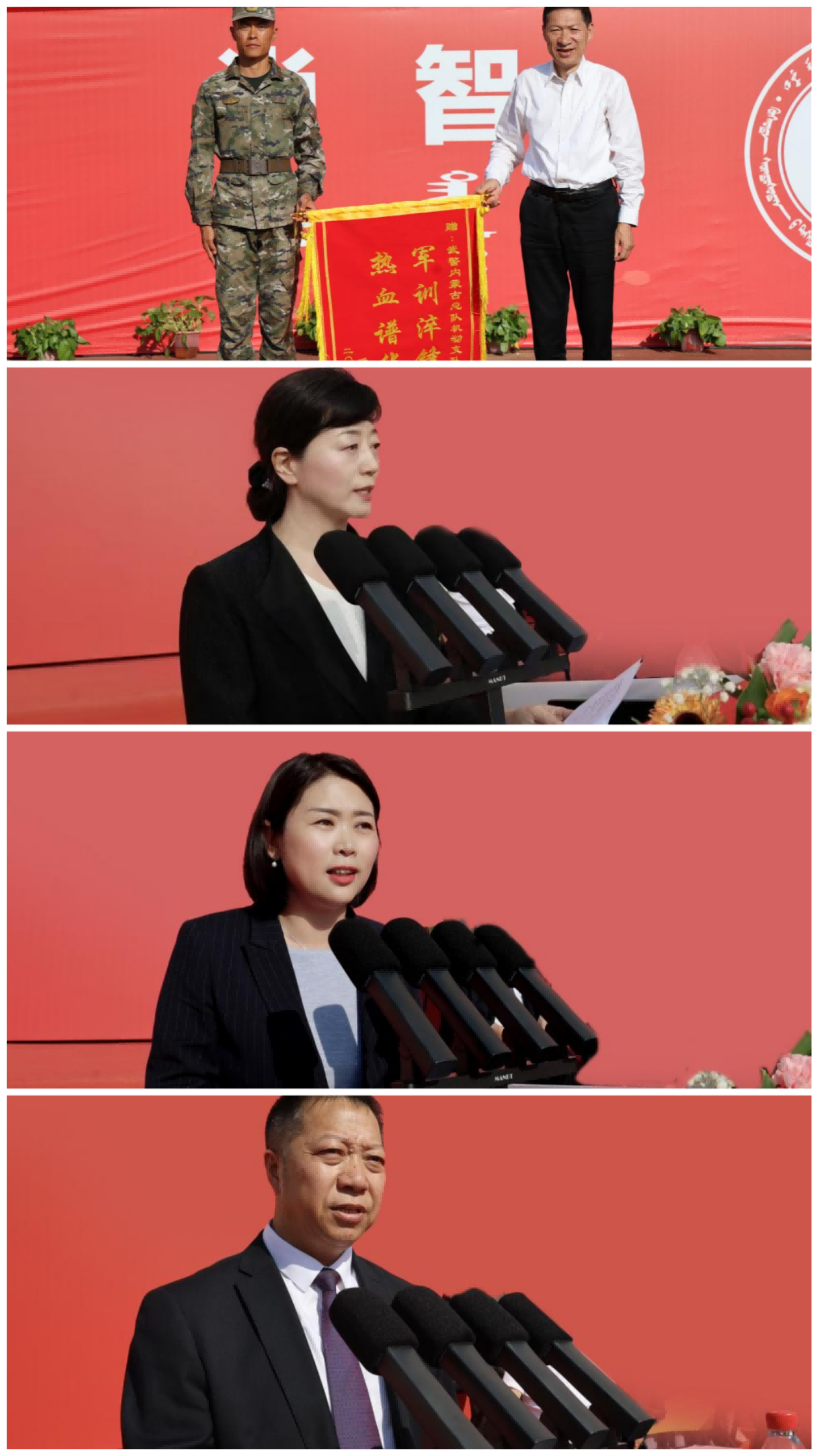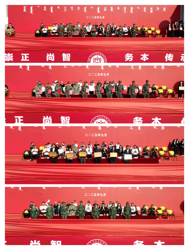 表彰先進(jìn)環(huán)節(jié),黨委副書記格根哈斯宣讀表彰決定,對(duì)優(yōu)秀標(biāo)兵、優(yōu)秀教官和先進(jìn)集體頒獎(jiǎng)。主席臺(tái)領(lǐng)導(dǎo)為新生代表佩戴校徽,標(biāo)志著他們正式成為“民院人”。教師代表烏格德勒、在校生代表張景雯及新生代表白興楠分別發(fā)言,共同表達(dá)“以奮斗踐行強(qiáng)國有我”的決心。