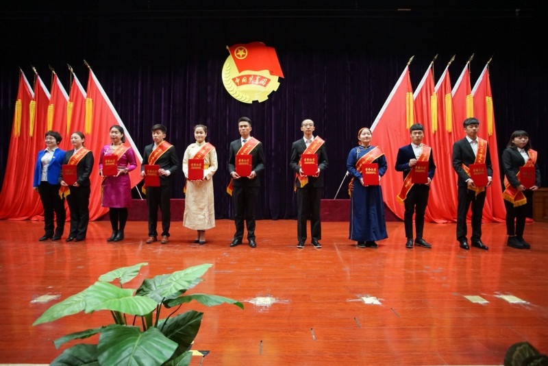 首先,由團委書記李宏亮宣讀了《關于表彰2016--2017年度“五·四”先進集體及先進個人的決定》,決定授予:音樂系團總支等3個系部團總支“‘五·四’紅旗團總支”稱號;蒙古語言文學系2013級漢蒙翻譯班團支部等10個團支部“‘五·四’紅旗團支部”稱號;外語系學生會等5個學生會“優秀學生會”稱號;馬列教研部火碩旗理論社團等5個學生社團“優秀社團”稱號;數學系青年派志愿者服務隊等5支服務隊“優秀志愿者服務隊”稱號。授予:楊磊等5名同志“優秀共青團干部”稱號;蒙古語言文學系烏貞桔等10名同學“十佳大學生”榮譽稱號;體育系郝建華等35名同學“優秀學生會干部”稱號;環境工程系李瑞欣等24名同學“優秀社團干部”稱號;法律系何宇萱等33名同學“優秀志愿者”稱號;教育系白楊等34名同學“優秀網絡宣傳員”稱號,外語系溫雅迪等239名同學“優秀共青團員”稱號。隨后參會領導為獲獎集體和個人頒獎。