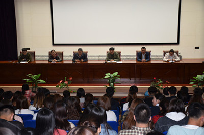 漢語言文學系于2017年4月12日晚7時,在學校圖書館二樓報告廳召開學風建設動員大會。學生工作處副處長陳青春應邀出席,漢語言文學系黨總支書記賽音圖、系主任崔鳳珍、副主任許麗、哈琴及全系師生500多人參加了本次動員大會。會議由漢語言文學系團總支副書記張子涵主持。