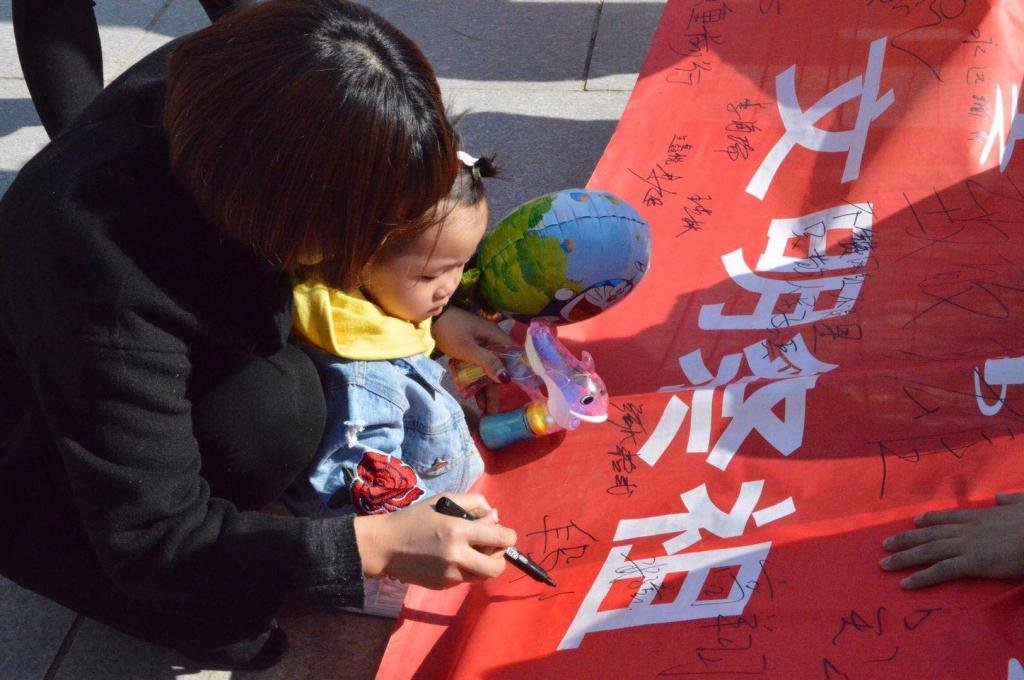 此次活動中,學生代表首先肅穆在紀念碑前,默哀三分鐘來寄托他們對烈士們的哀思與崇敬。隨后,學生們現場拉起橫幅,組織公園里的廣大群眾參與到簽字活動中來。現場群眾踴躍參加,以此形式表達他了們對烈士們的無盡哀思。