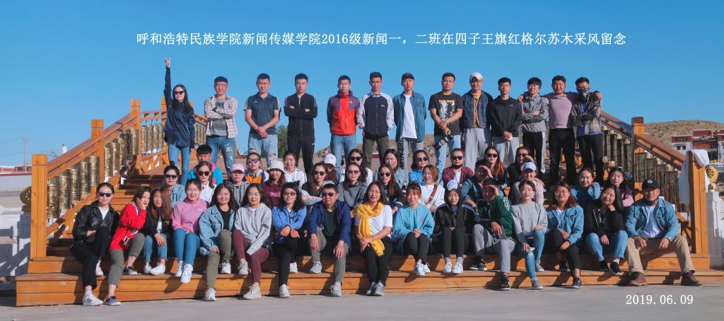 2016級(jí)新聞學(xué)班在四子王旗紅格爾蘇木見習(xí)留念