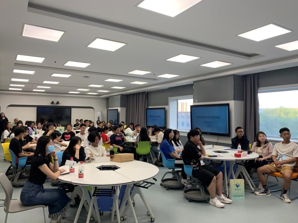 郝建軍老師圍繞考研目的、院校選擇、備考策略等方面做詳細的講解,尤其著重介紹了專業課程《數學分析》和《常微分方程》的學習方法。他建議同學們制定合理的計劃,有效利用網絡資源,勤勉學習、努力進取、持之以恒。郝老師結合相關數據資料對同學們的疑問進行耐心細致的解答。