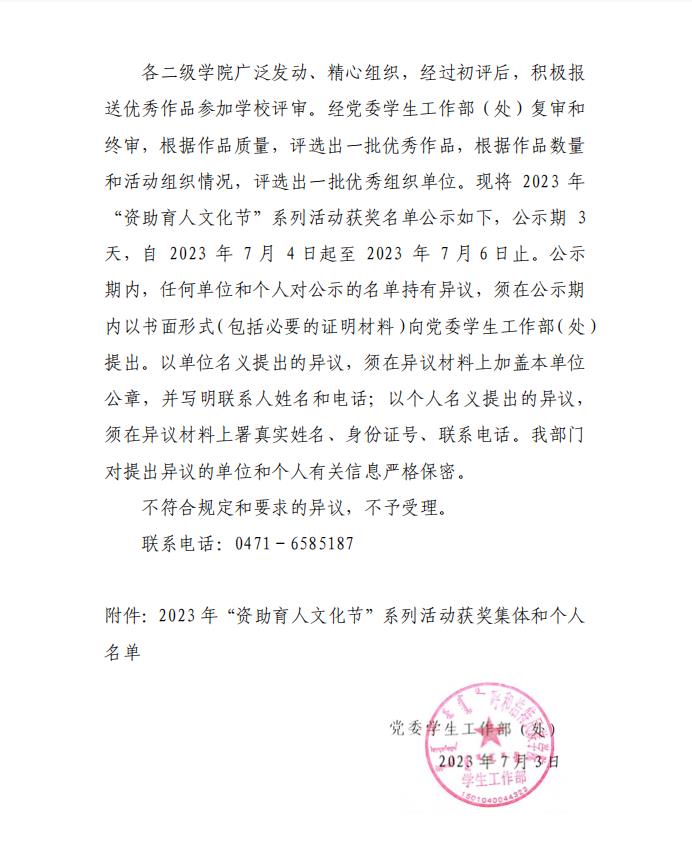 上一條:關于對查蘇娜等16名學生撤銷違紀處分的決定 下一條:關于2022年學生工作先進集體、先進個人和優秀學生擬表彰對象的公示