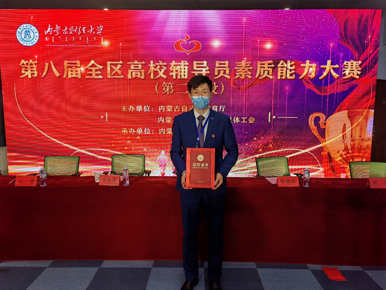 4月28日,由內蒙古自治區總工會、內蒙古自治區人力資源和社會保障廳主辦,內蒙古自治區教育廳、內蒙古自治區教科文衛體工會承辦的第八屆全區高校輔導員素質能力大賽在內蒙古財經大學舉辦。我校兩名輔導員進入決賽,額日合木最終以優異的表現勇奪大賽一等獎,充分展示了我校輔導員隊伍良好的素質能力和精神面貌,創造了參賽歷史最好成績。