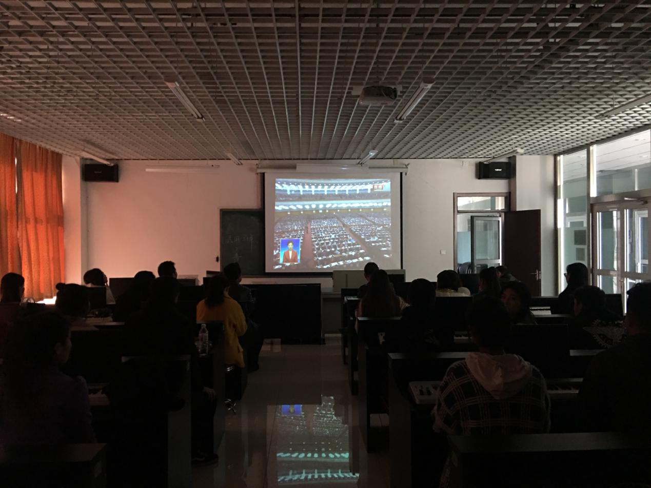 3月5日上午9點整,十三屆全國人大二次會議在人民大會堂開幕。音樂系黨總支組織我院全體師生黨員、入黨積極分子以及部分學生干部在綜合樓403電子音樂教室觀看大會實況轉播。