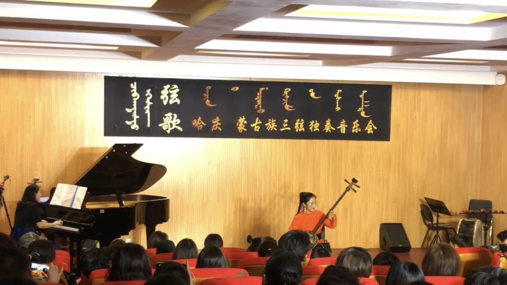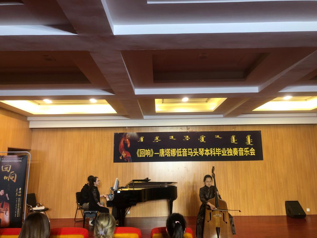為展示畢業生的專業技能,音樂學院利用5月14日、16日兩晚時間,在音樂樓多功能廳舉行了“弦歌”——哈慶蒙古族三弦獨奏音樂會和“回響”——唐塔那低音馬頭琴獨奏音樂會。值得提及的是,這兩場畢業生專業匯報音樂會均為自建國以來蒙古族三弦專業和低音馬頭琴專業本科生舉辦的第一次個人音樂會,二者已經填補蒙古族三弦和低音馬頭琴發展中的歷史空白,也實現了蒙古族三弦和低音馬頭琴歷代前輩們的愿望。