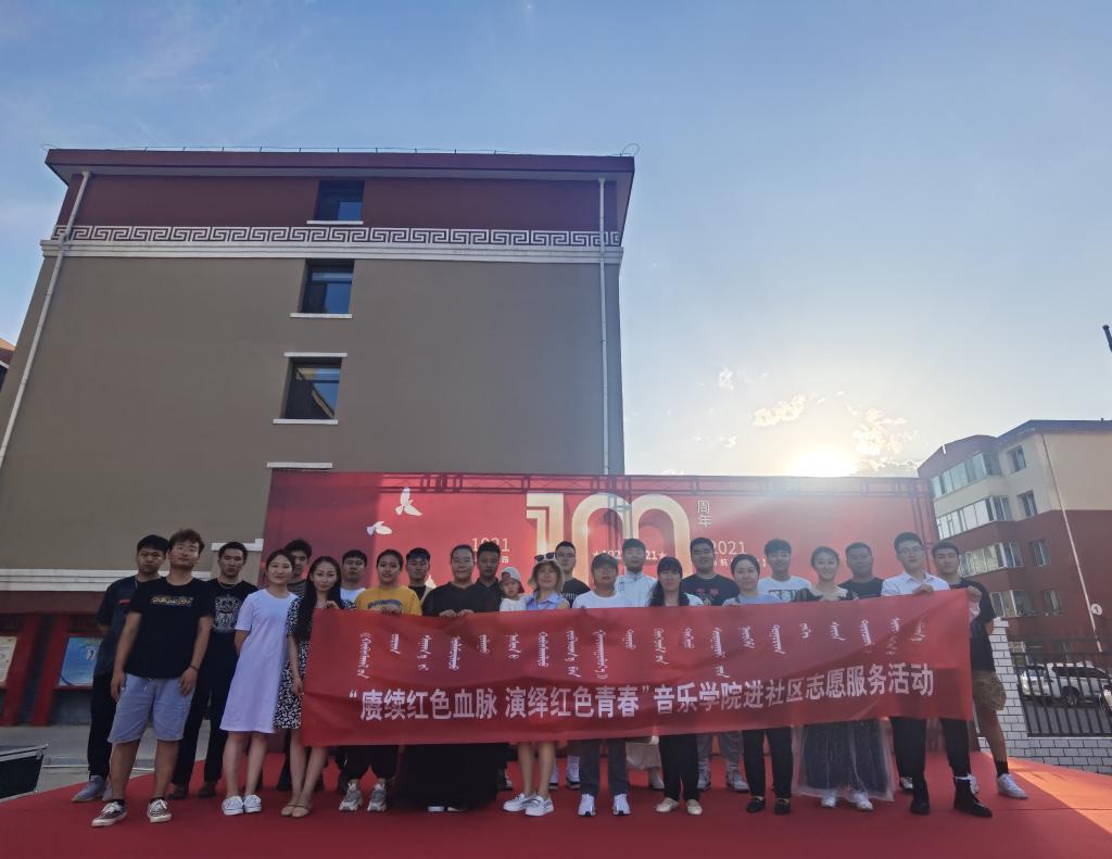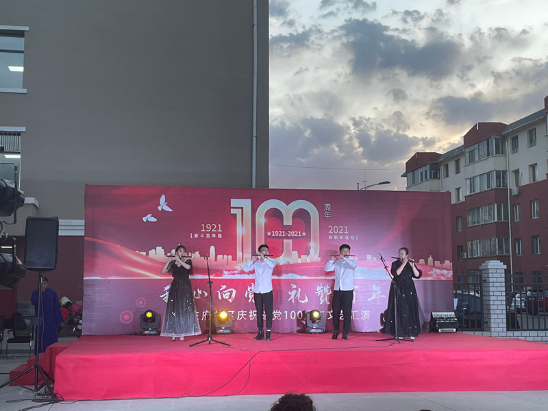 為推動黨史學習教育深入開展,積極踐行“我為群眾辦實事”,學院黨總支與公主府社區黨委聯合協作,共促發展。7月1日晚,我院學子赴公主府社區,助力社區慶祝建黨100周年文藝匯演,同學們在演出前幫助社區工作人員布置場地,并在文藝匯演中表演了馬頭琴齊奏《故鄉》、竹笛齊奏《揚鞭策馬運糧忙》等節目,受到在場觀看社區群眾的一致好評,充分展示了我校學子的風采,踐行了“我是黨員我幫你”“我是團員我幫你”的志愿服務精神。
