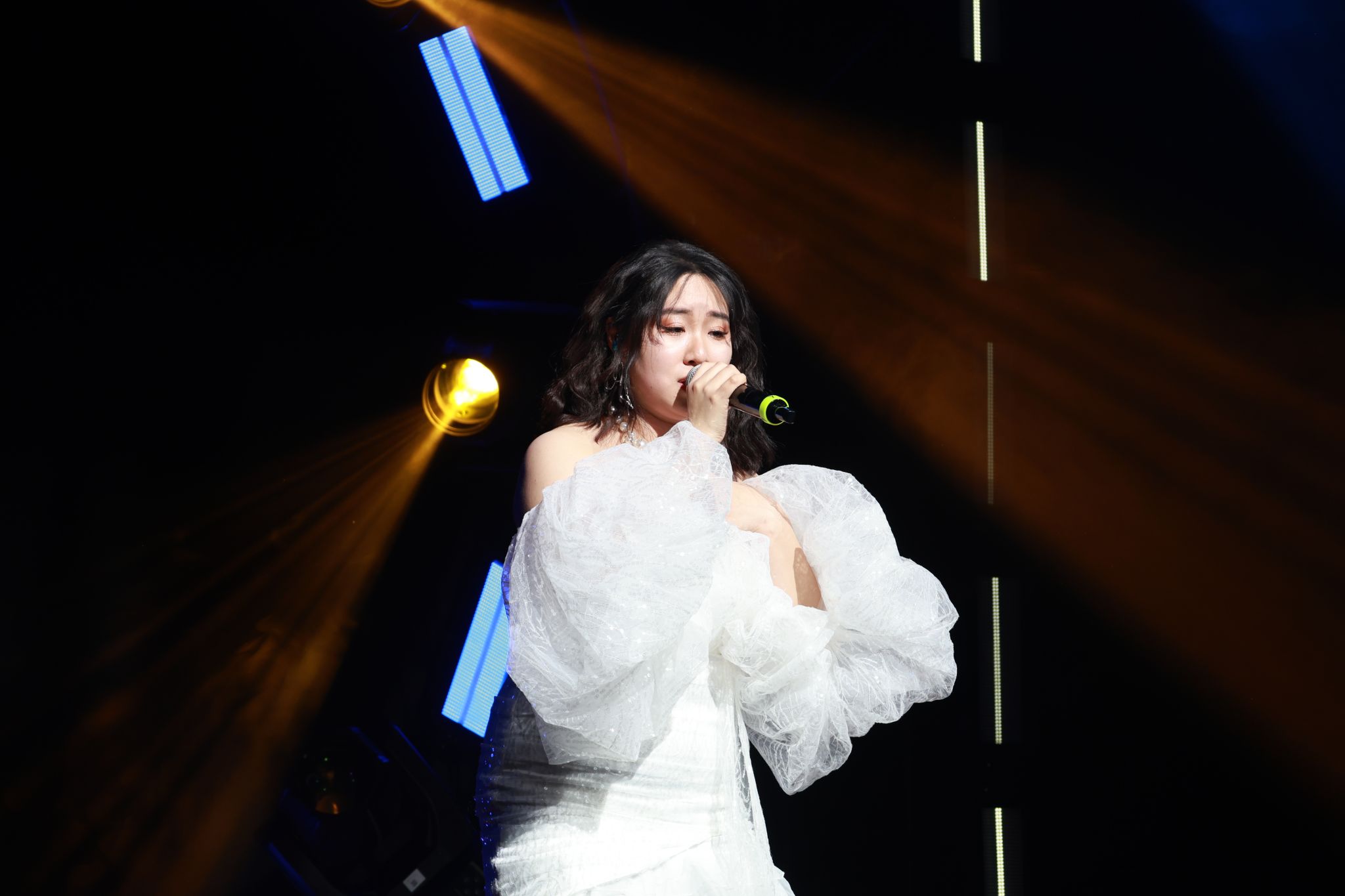 音樂會(huì)現(xiàn)場,畢業(yè)生們用動(dòng)人的歌聲詮釋了不同風(fēng)格的流行音樂作品。李昂深情演繹了《伏筆》《陰天》等抒情歌曲,報(bào)告廳化作璀璨的音樂星河,其富有感染力的嗓音贏得陣陣掌聲;陳曦則以充滿爆發(fā)力的《餓狼傳說》點(diǎn)燃全場氣氛,舞臺(tái)瞬間迸發(fā)紅色光束與金色碎閃;而演唱《敕勒歌》時(shí)舞臺(tái)背景呈現(xiàn)出一望無際的茫茫草原,配合她極具張力的嗓音,演繹的大氣又富有現(xiàn)代感。喬博在演唱《Forever young》時(shí),舞臺(tái)背景切換為充滿未來感的機(jī)械齒輪元素,配合跳動(dòng)的電子光束,完美詮釋了歌曲永葆青春的現(xiàn)代主題。特別值得一提的是,三位畢業(yè)生與助演嘉賓王旭共同演繹的《這就是愛》將現(xiàn)場氣氛推向高潮,而終場曲目《我愛你中國》更以飽滿的愛國情懷為音樂會(huì)畫上圓滿句號(hào)。