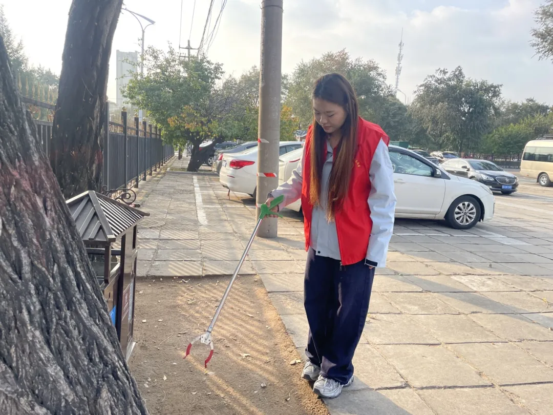 文化傳承的使命在心底扎根,這份赤誠便化作俯身實踐的熱忱。紅馬甲的亮色,很快鋪滿了古院的角落,同學們整理展陳周邊的環境——每一次彎腰,都是對文化遺產的珍視;每一處清掃,都是對“共同體家園”的呵護。